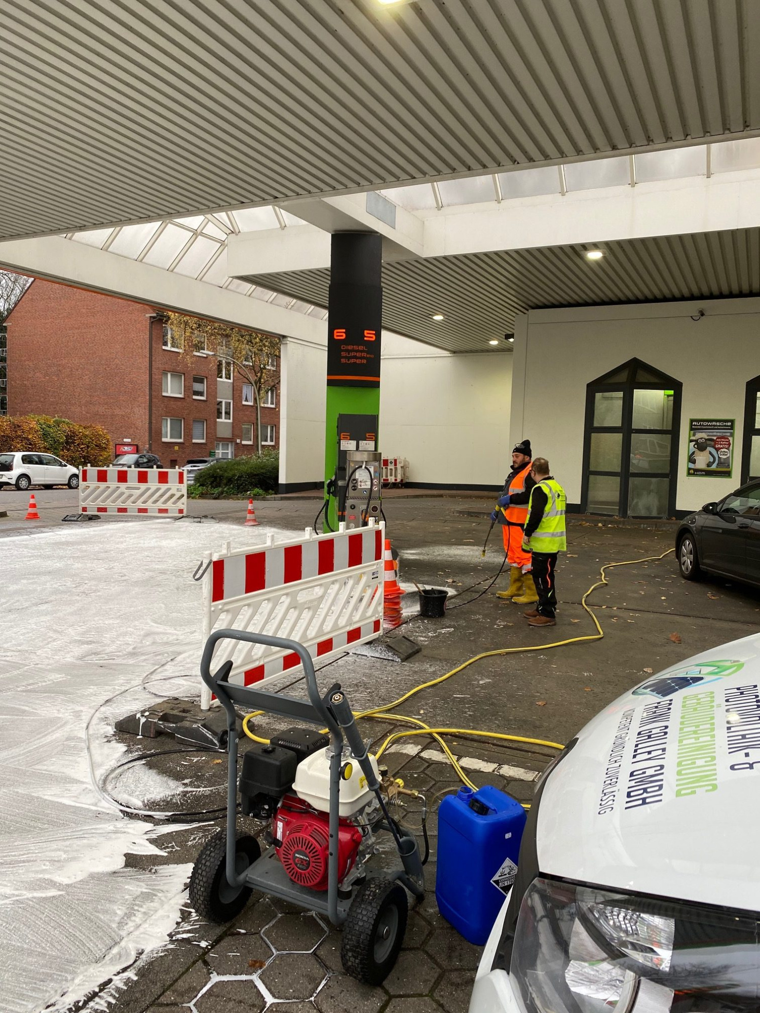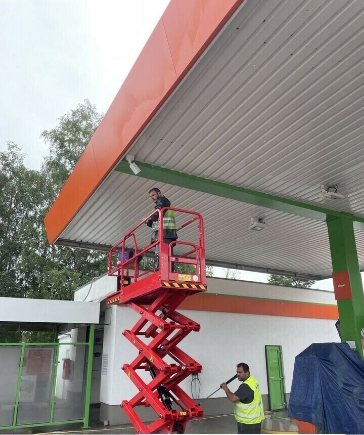 Bei Photovoltaik- & Gebäudereinigung Frank Galley bieten wir umfassende Reinigungsdienste für Tankstellen an. Unser Team sorgt nicht nur für die Sauberkeit Ihrer Zapfsäulenüberdachungen und Dachattika, sondern auch für die gründliche Reinigung der Abfüllflächen. Wir verstehen die Bedeutung einer sauberen und gepflegten Tankstelle für Ihre Kunden und Ihren Betrieb. Vertrauen Sie auf unsere Expertise und genießen Sie eine makellos saubere Tankstelle, die sowohl die Sicherheit als auch das Erscheinungsbild verbessert.